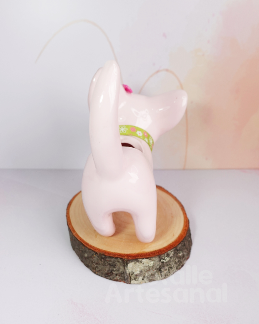 Matera en cerámica en forma de Gata pequeña con moñito, resinada e impermeabilizada para mayor protección al polvo y humedad. Vendría con planta natural*, piedritas decorativas, tarjeta de cuidados y bolsa de papel kraft. (La base de madera no viene incluida, sólo hace parte de la decoración de la imágen).